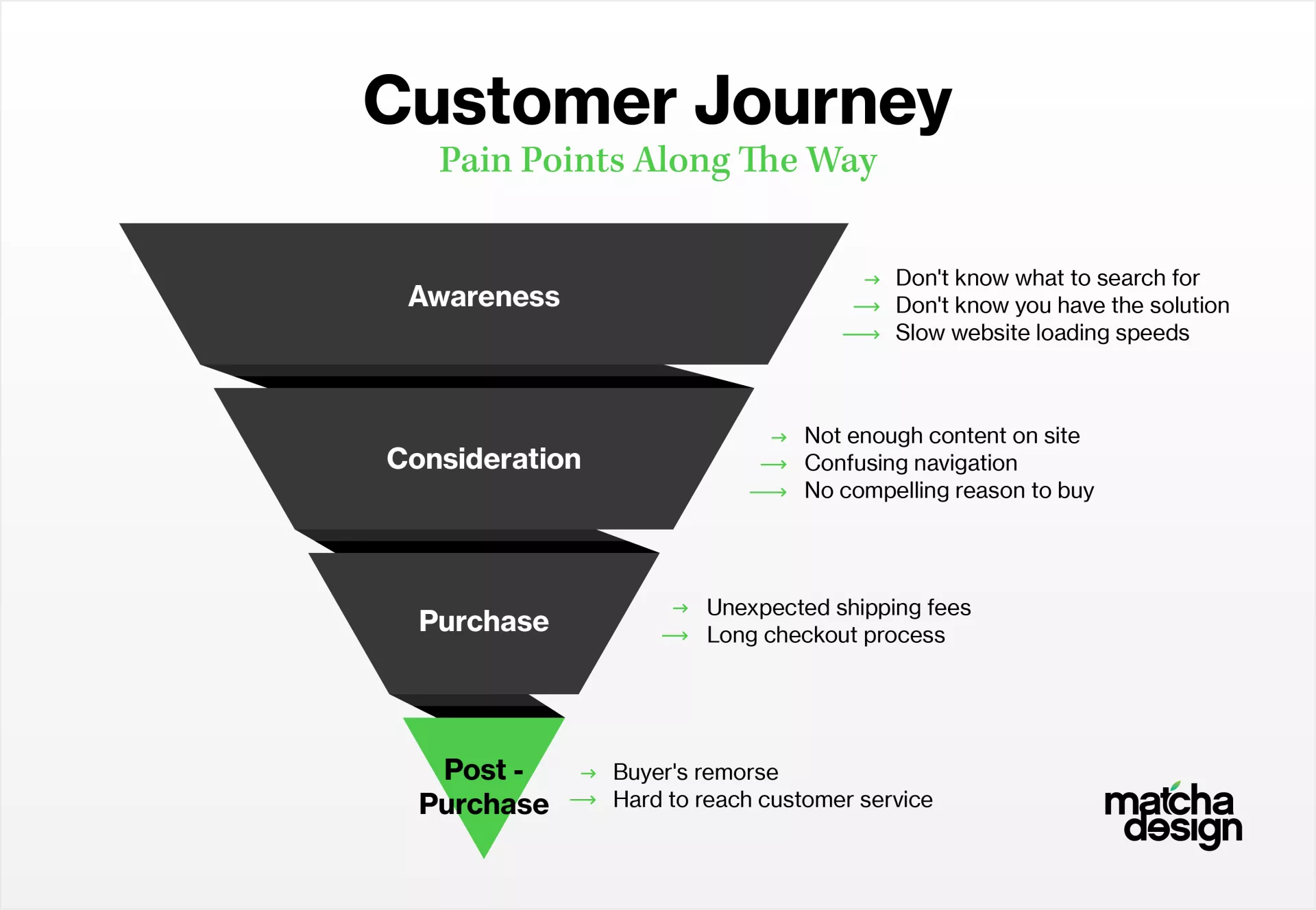 As you map out the customer journey, one of the most important things to remember is that youโll need to think about customer pain points all along the way. By ancticipating where the journey gets difficult, you can provide extra help or another push to get them to continue on the path toward becoming loyal customers.ย